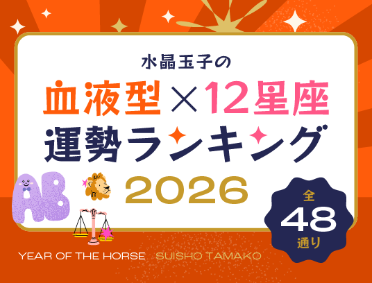 TVやメディアで大活躍の水晶玉子さんが占う2026年の運勢。12星座×血液型のランキング全48通りをお届けします。あなたは何位?