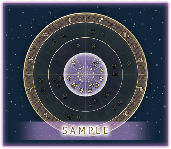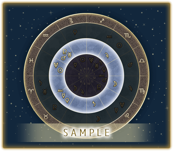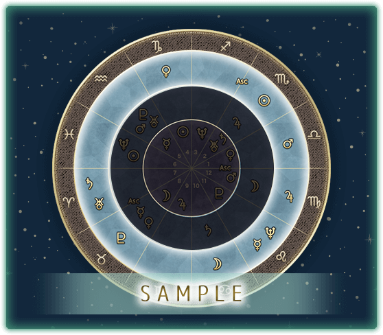 一番内側の円にあるネイタルホロスコープは、出生時の星の位置を示した図であり、ホロスコープ占いの基礎となる最も重要なものです。その人が生まれ持つ特徴や与えられた運命を知ることができます。